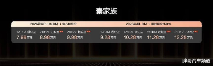 1月8日,比亚迪秦家族迎来重磅加推,2026款秦L DM-i /2026款秦PLUS DM-i 210KM长续航版双车同步上市,售价8.98-12.28万元。其中,2026款秦L DM-i 210KM长续航版限时超级优享价11.28-12.28万元,2026款秦PLUS DM-i 210KM长续航版售价8.98-9.98万元。同时,两款车型均带来了丰厚的上市权益礼。
